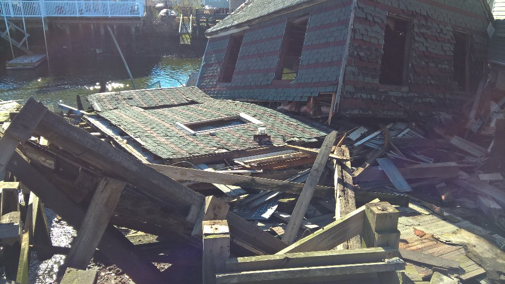 Photo: Empty home blown over in Howard Beach in Queens, NY; police say no one injured